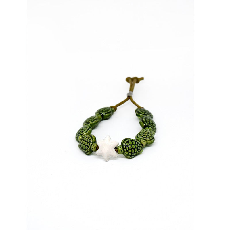 Braccialetto con ciondoli in ceramica e filo cotone 100% e chiusura regolabile in acciaio.