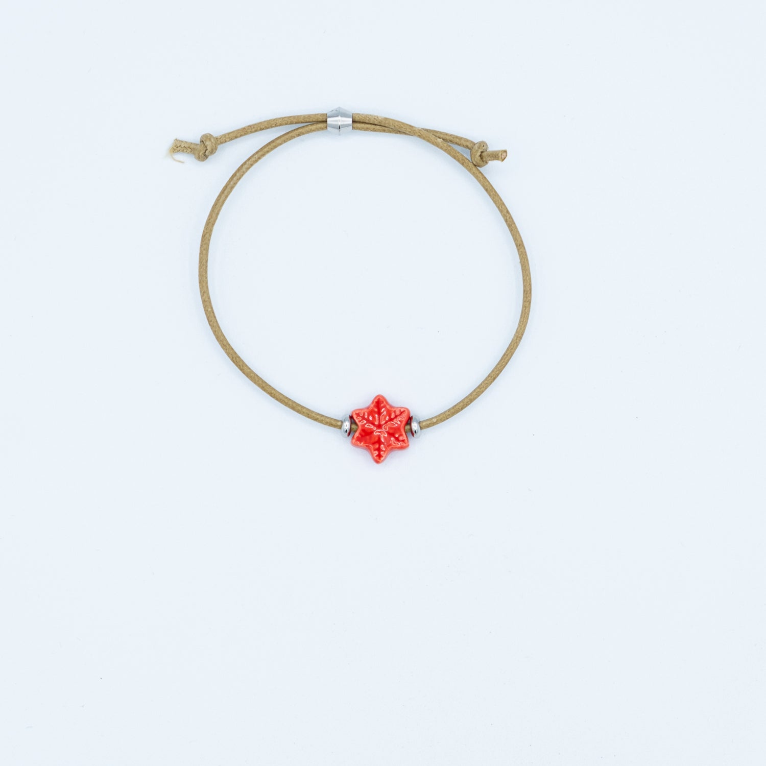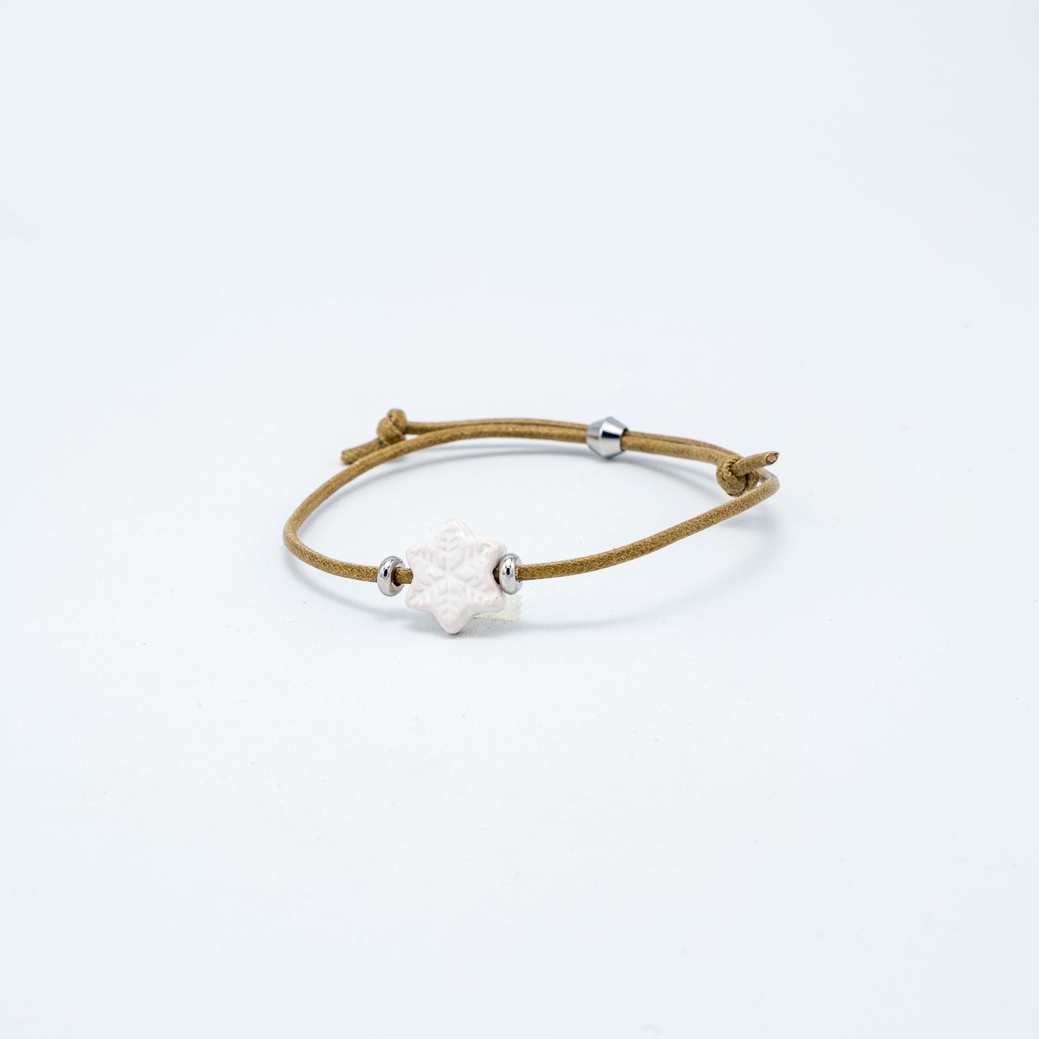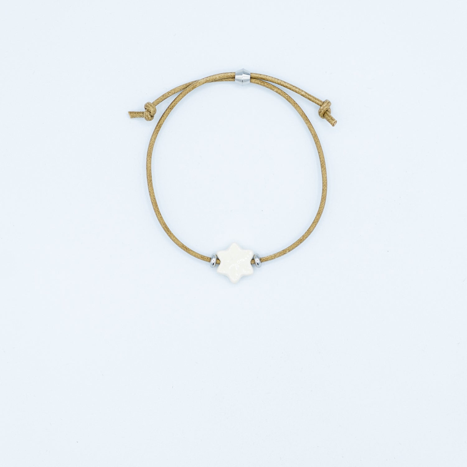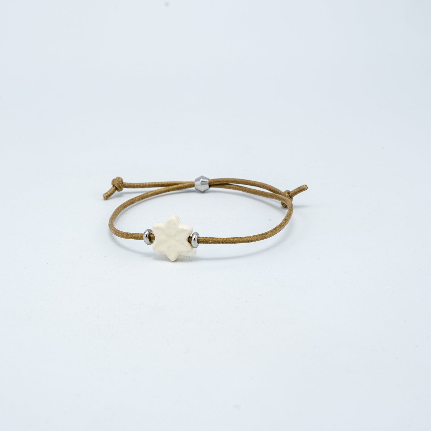 Braccialetto con ciondolo in ceramica e filo cotone 100% e chiusura regolabile in acciaio.