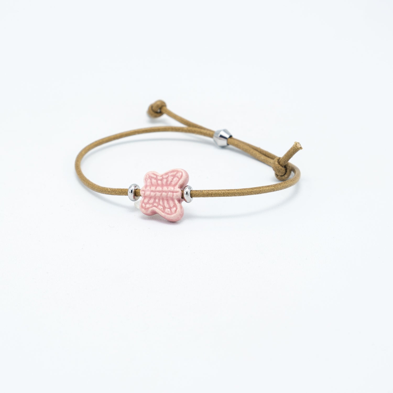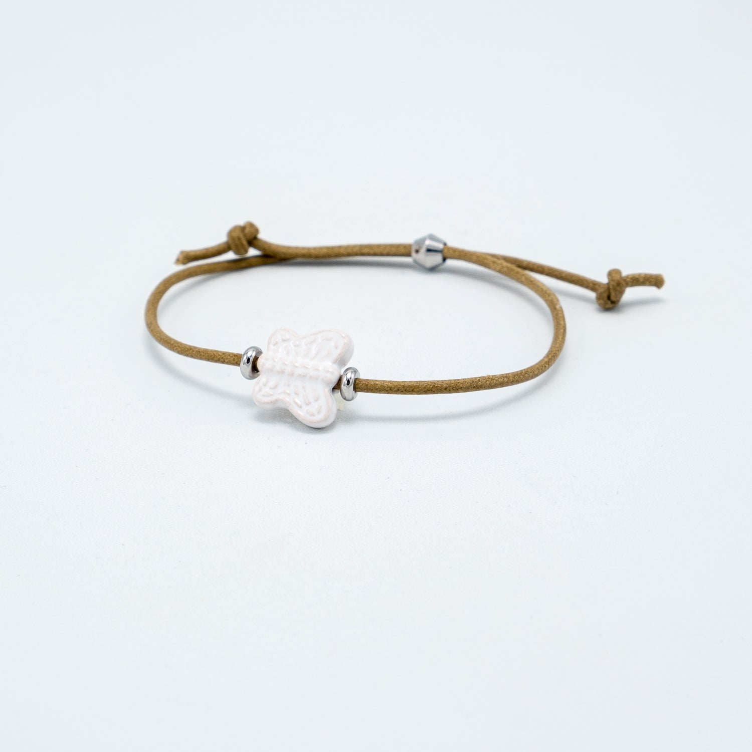 Braccialetto con ciondolo in ceramica e filo cotone 100% e chiusura regolabile in acciaio.